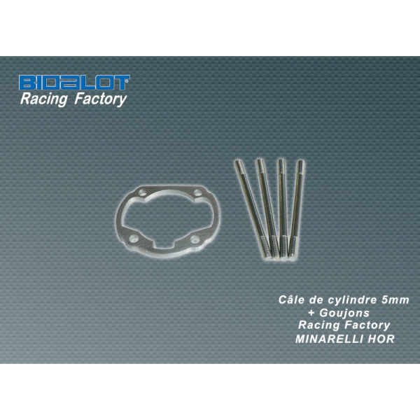 Câle de cylindre Aluminium, découpée laser, épaisseur 5mm, pour cylindre Racing Factory MINARELLI Horizontal. Livrée avec un jeu de goujon L108mm.